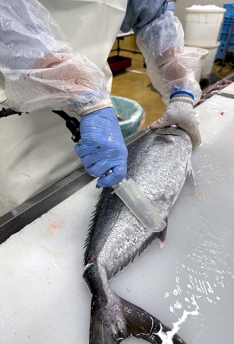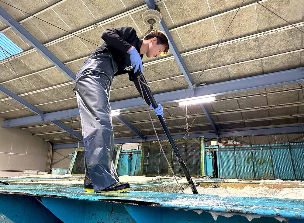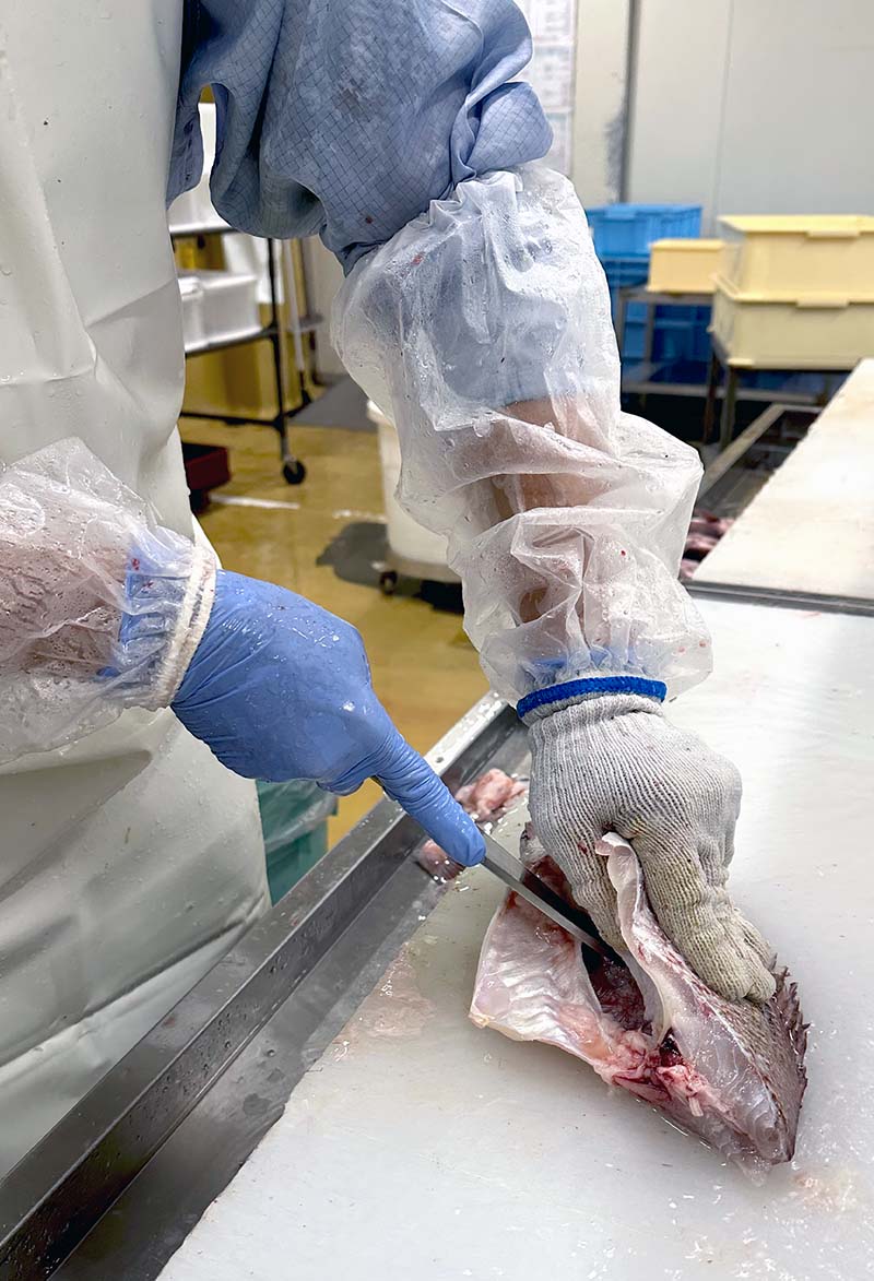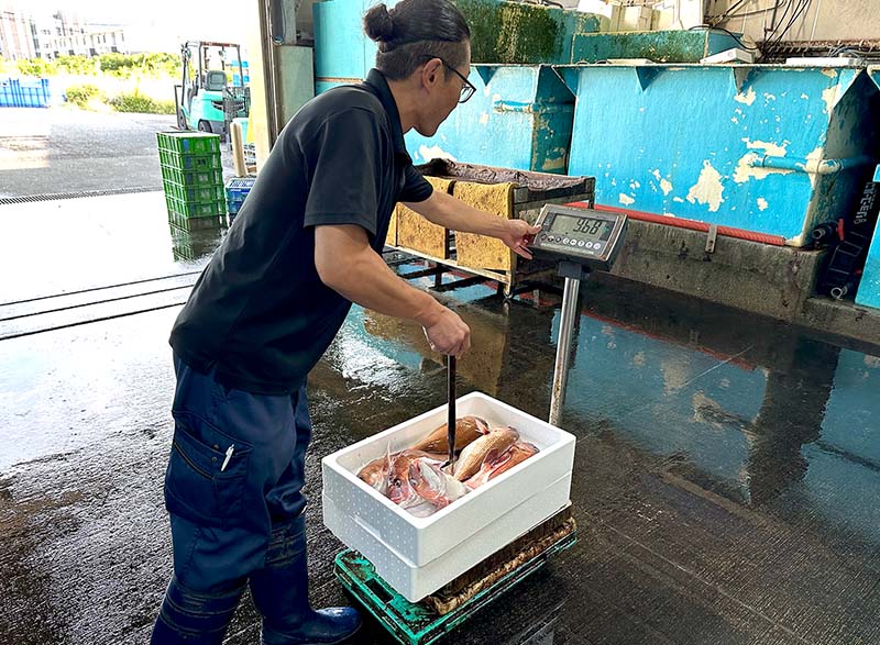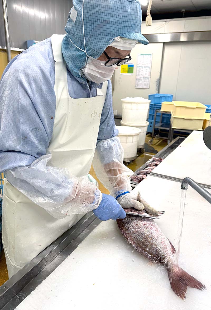 Our Kumamoto Sales Office was established to ensure a stable supply of high-quality live fish to the central and southern regions of Kyushu, with a specific focus on Kumamoto City. It is located in Kamishiro 3-chome, Nishi Ward, along the midstream of the Tsuboi River, which flows through Kumamoto Castle's moat. This location offers convenient access, as it is close to the Tazaki Wholesale Market. Like our Fukuoka headquarters, we operate 365 days a year, striving to provide products that meet our customers' needs. Our dedicated processing facility is equipped with an ozone generator and conducts regular bacterial inspections to maintain strict quality control. We actively process live fish into fillets, loins, and various other forms.