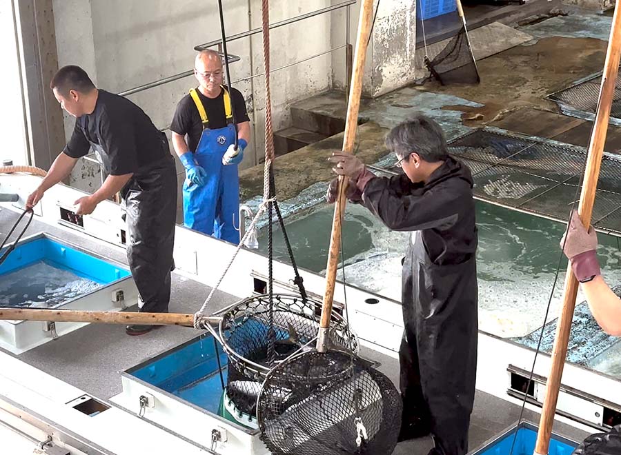 Throughout the year, we procure farmed sea bream, yellowtail, and amberjack mainly from Kyushu, as well as wild conger eel from Tsushima, using large live fish trucks and transport vessels. The fish are collected in our 28 large tanks, each with a capacity of 240 tons, and sorted by species. We carefully assess the condition of the fish to ensure they are delivered to our customers in the freshest possible state. We have established systems and structures that enable us to deliver fresh fish 365 days a year, so you can trust us for reliable transactions. Additionally, we offer meticulous fish processing services, providing various processing options, including three-piece fillets, tailored to the customer's needs, and deliver the products vacuum-packed.